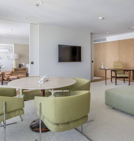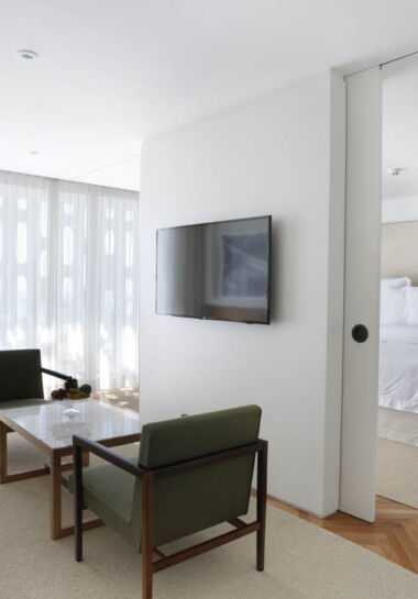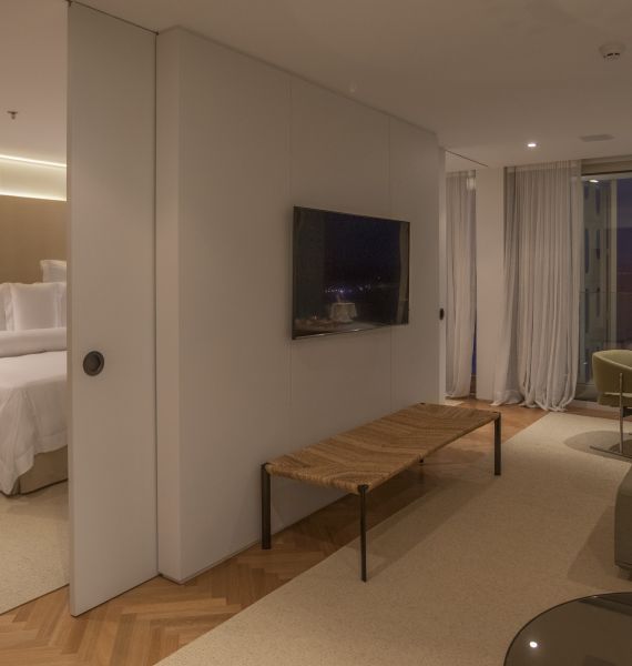 - Sala integrada – o hóspede pode fechar as portas de correr e isolar a área do quarto