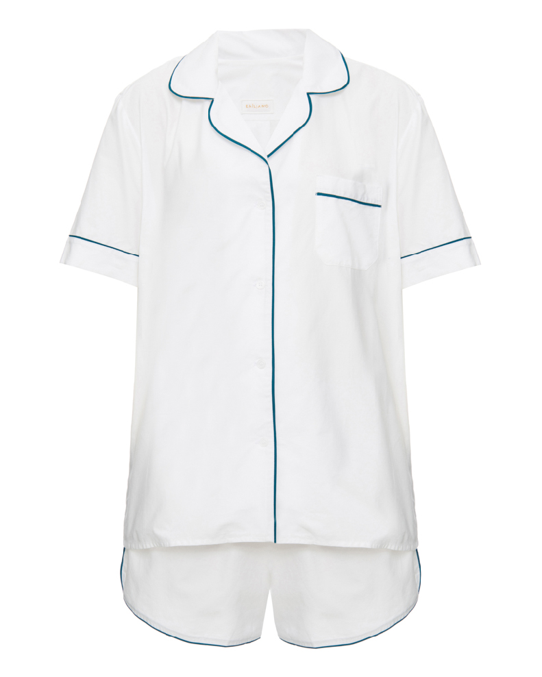 The pajamas are made by upcycling discarded 400-thread-count sheets, reusing materials and reducing environmental pollution. 90% of the sheets are reused in one year.